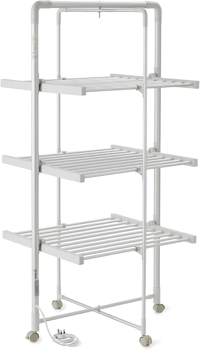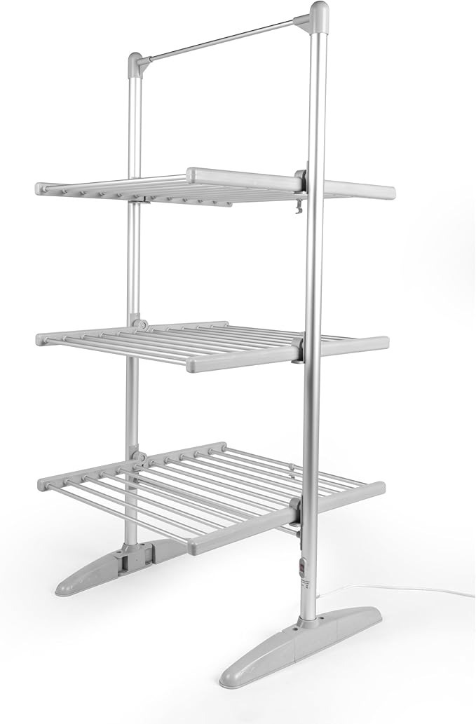 Heated bars allow quicker indoor clothes dryingThree-tier layout increases vertical drying space